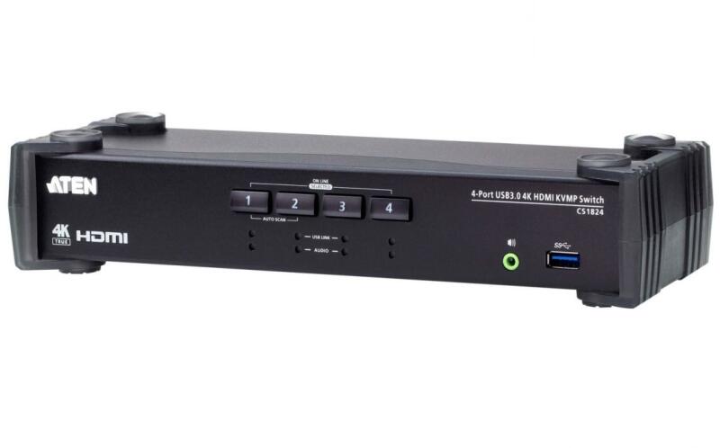 ATEN 4-Port USB 3.0 4K HDMI KVMP Switch with Audio Mixer Mode (CS1824-AT-G) - primatinta