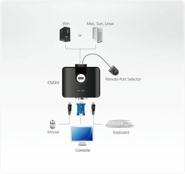 ATEN CS22U KVM Switch/kábel USB 2PC (CS22U) - oneclick