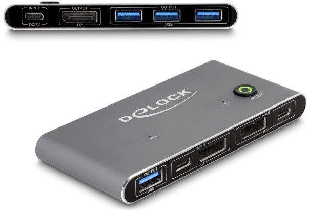 Delock DisplayPort KVM Kapcsoló: Könnyű több számítógép kezelése ?️ Ez a Delock DisplayPort KVM kapcsoló tökéletes megoldás két számítógép egyszerű váltásához egyetlen DisplayPort monitoron. Egyszerűen válthatsz a gépek között egyetlen gombnyomással. Főbb jellemzők:8K felbontás (30 Hz): Élvezd a kristálytiszta képet. 4x USB 5 Gbps port: Csatlakoztass egeredet, billentyűzetet és egyéb USB eszközöket. Gyors adatátvitel: 5 Gbps sebességű adatátvitel a zökkenőmentes működésért. Könnyű használat: Nincs szükség illesztőprogram telepítésére. Robusztus kivitel: Fémburkolat a tartósságért. Kompakt méret: Kb. 115 x 54 x 12 mm, könnyen elfér az asztalodon. Csatlakozók:Bemenet Kimenet2 x DisplayPort 1 x DisplayPort2 x USB 5 Gbps Type-C 4 x USB 5 Gbps Type-AA csomag tartalma: KVM kapcsoló 2 x USB kábel (Type-A és Type-C) Tápellátó kábel (USB-C - USB-A) Használati utasítás Kompatibilitás: DisplayPort csatlakozóval rendelkező számítógépek DisplayPort csatlakozóval rendelkező monitorok Szabad USB-A port a tápellátáshoz