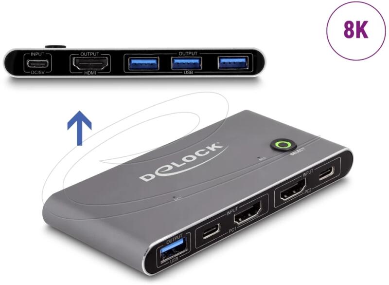 DELOCK HDMI KVM 8K 60 Hz kapcsoló USB 5 Gbps (18647) - ipon