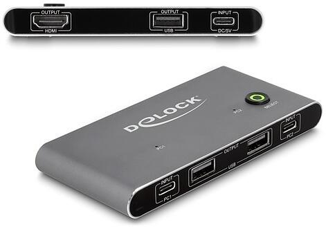 Delock USB-C -s KVM kapcsoló HDMI-hez 8K 60 Hz USB 2.0 csatlakozó felülettel (11486)